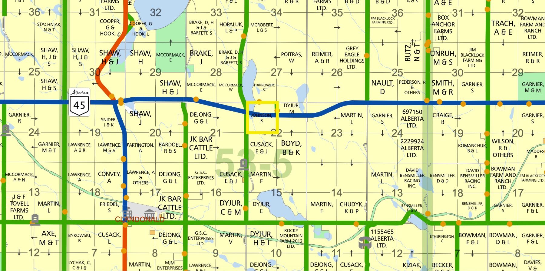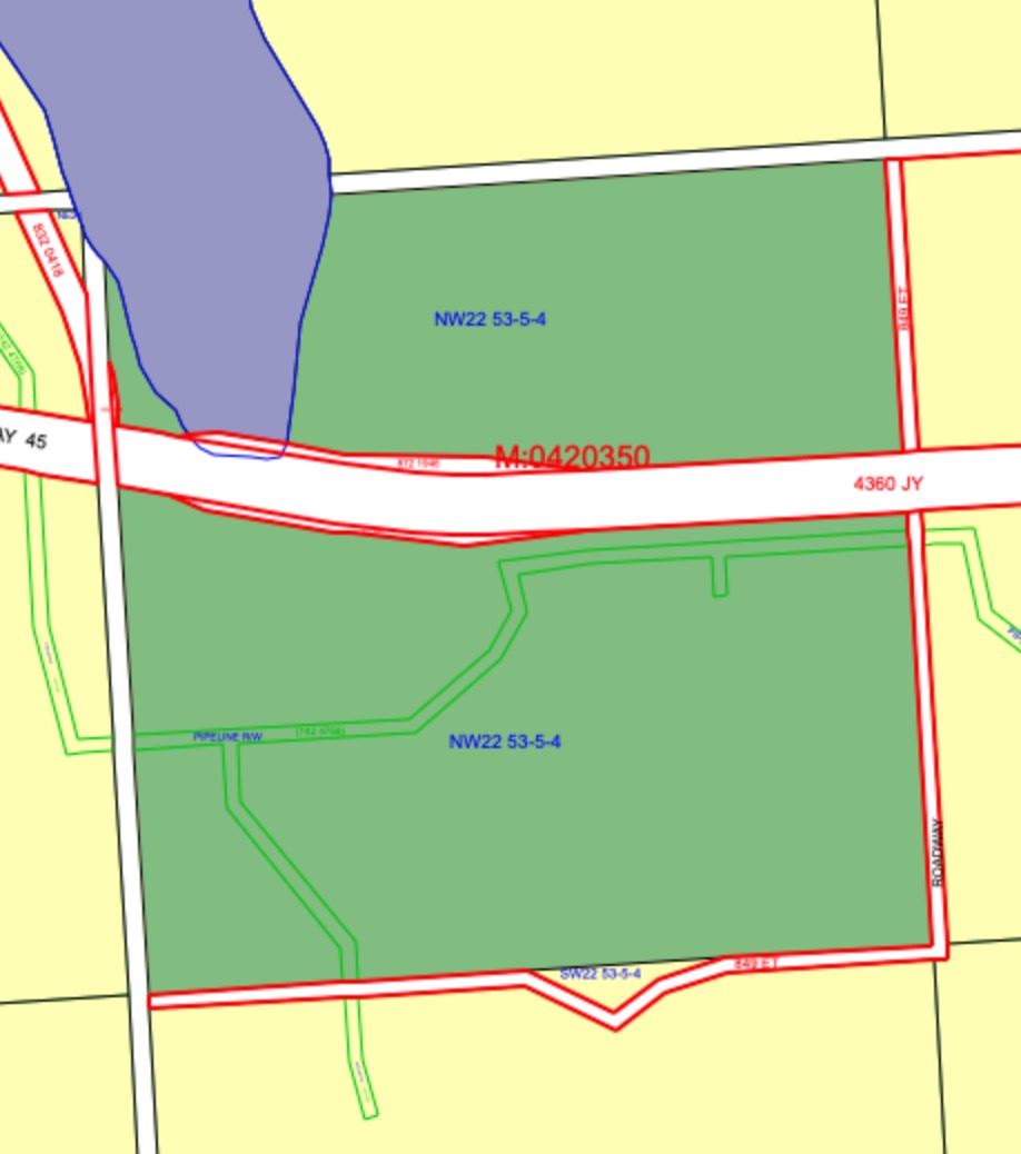 131 acres on title. Two CNRL leases producing a total of $7,000 annual revenue. With Highway 45 running through the quarter section it provides easy access all of the land. Currently used for grazing. As per published Offer to Purchase, possession/closing date is May 1, 2025.